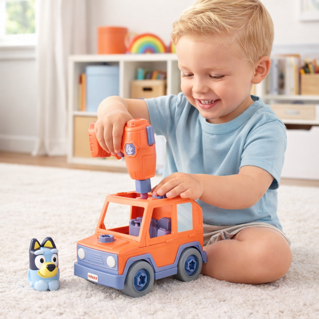 Build, take apart, and zoom away with Bluey in this fun filled toddler construction set that brings hands on play to life. The Build A Buddy Bluey car set is designed especially for little hands, giving toddlers the joy of building their own vehicle before sending it off on adventure.