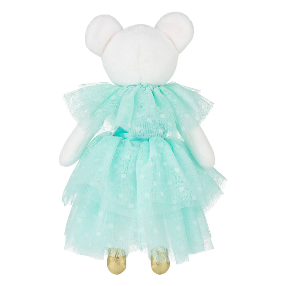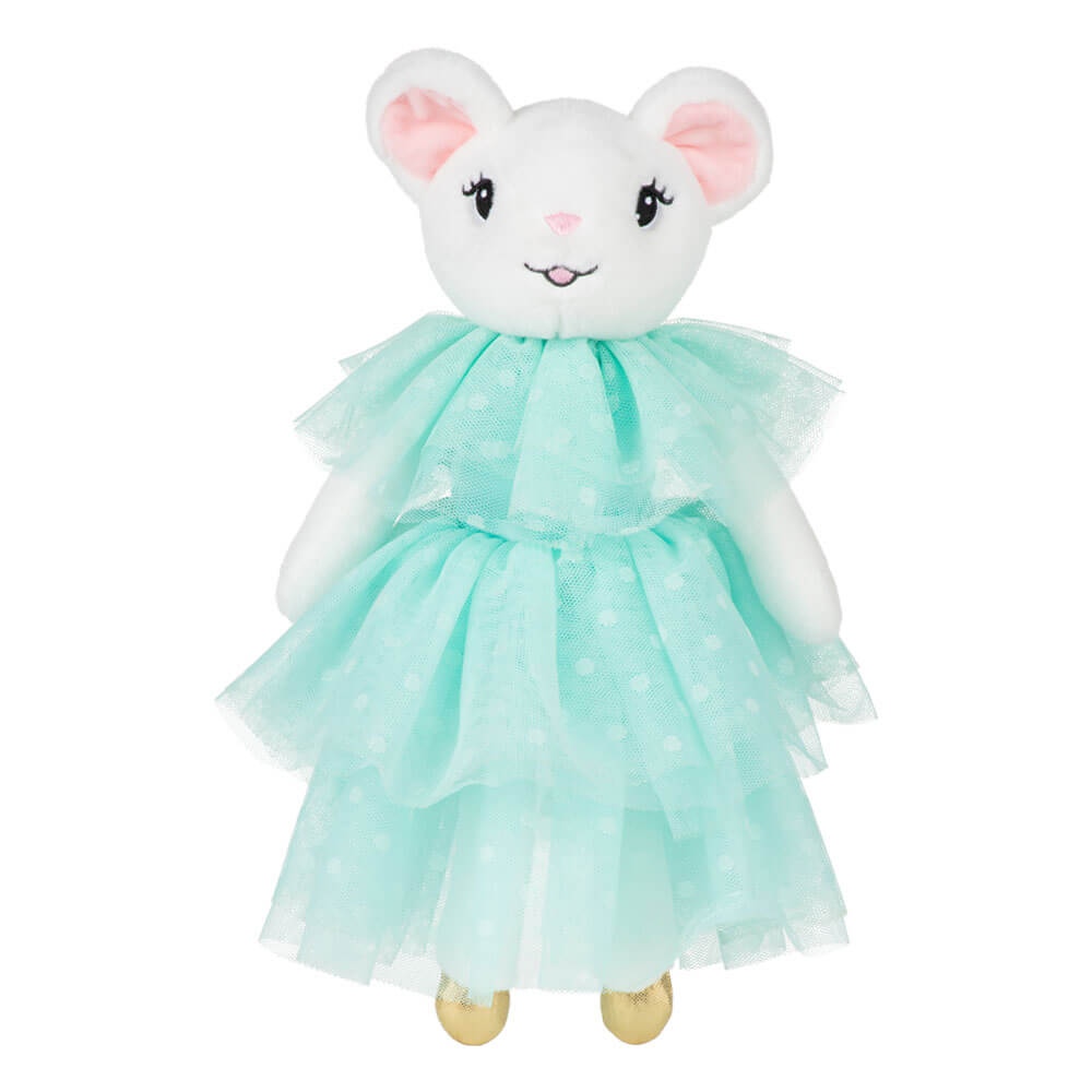 - Claris plush features gold shoes and deluxe soft tulle turquoise dress